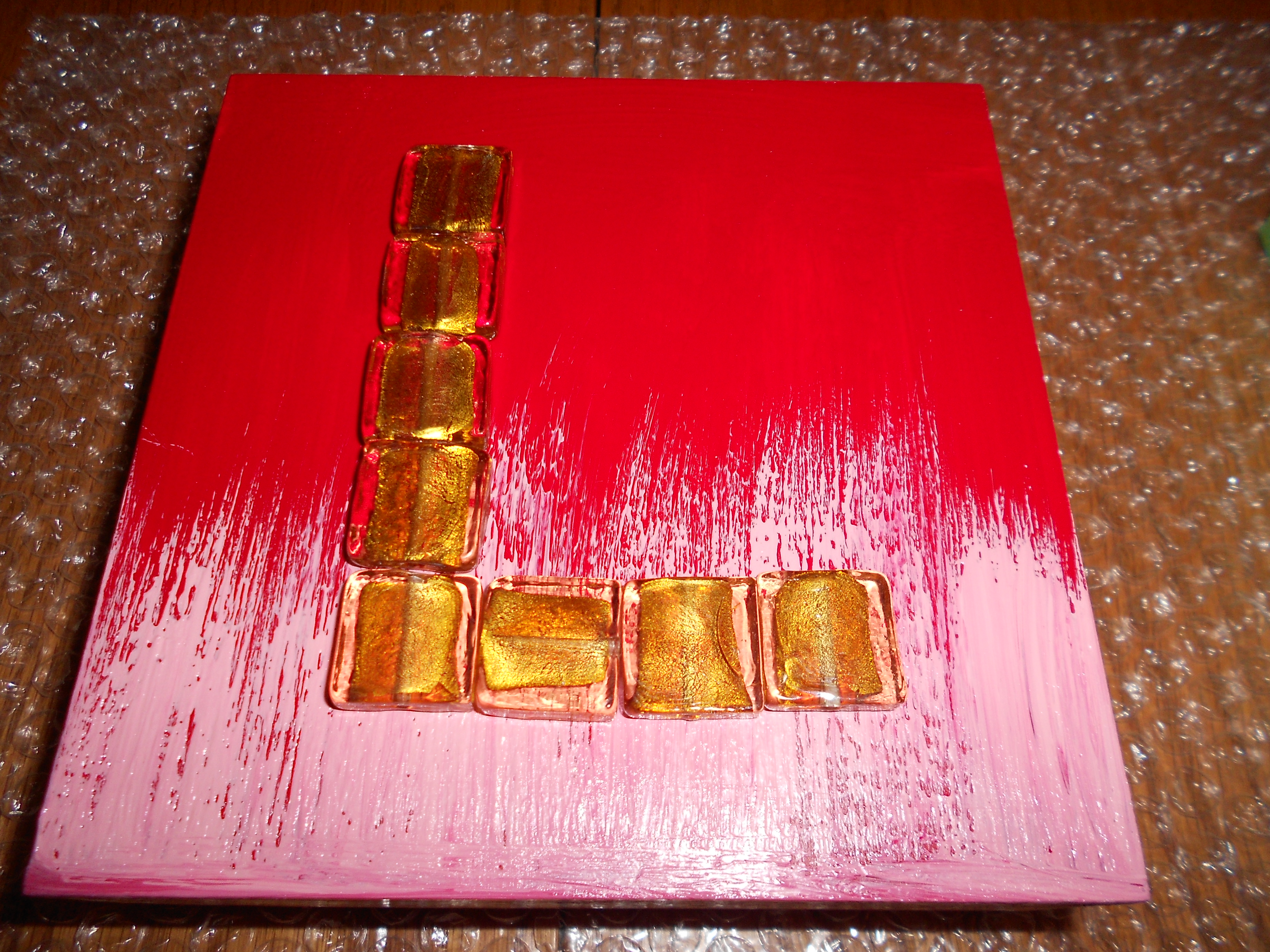 Otherwise, I did a set of paintings that turned out pretty neat. At first, I was not liking the colors. Somehow they looked better in my mind when I was planning them, but when I put the beads on later, then it turned out really different!! I like it. The beads are not glued on yet, because I ran out of glue. When they are set on, you can make the paintings stand up; they are wooden boxes, not canvases.