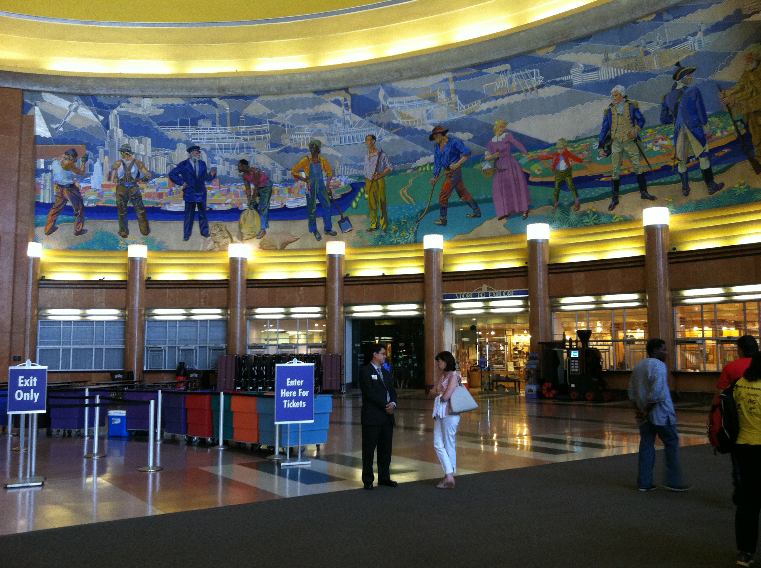 Here it is: home to several museums, Cincinnati Amtrak and a research library. Also home of the Pompeii exhibit until August 12, 2012!! I liked the structure of the building. On the front by the doors it has in the stone an inscription of 1931 along with information of the time capsule there.