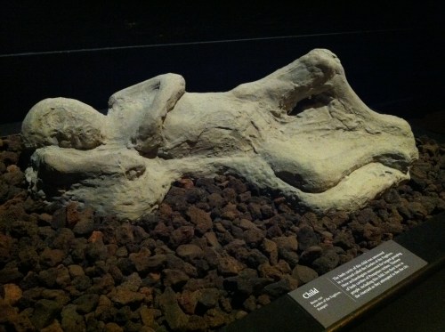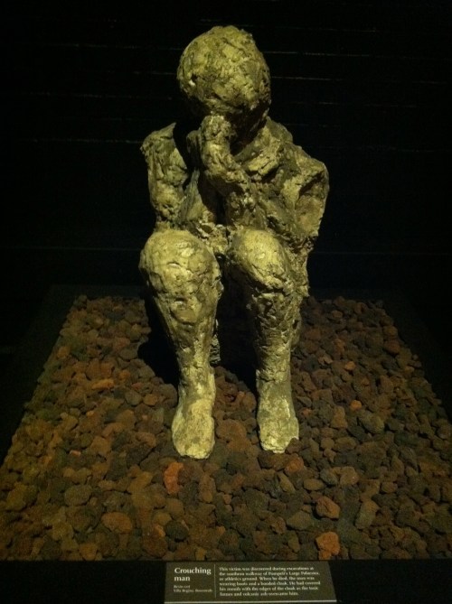 As you went through towards the end, the mood started to shift. It became more quiet. Then they had this video that played continuous about the last 24 hours of Pompeii. It was set up like you were viewing the city looking at Mt. Vesuvius. The morning around 8am looks normal, then by 1pm it is raining balls of ashes that was burning the city. By the end, you hardly see anything. It is said that what killed most people of Pompeii was the pyroclastic cloud which basically just suffocated them almost immediately. Pompeii was lost under almost 13 feet of ashes. It was not rediscovered until the mid 1700’s! When they started finding the bodies, they made a plastic cast of the original and that is what we saw. The detail. The expressions.