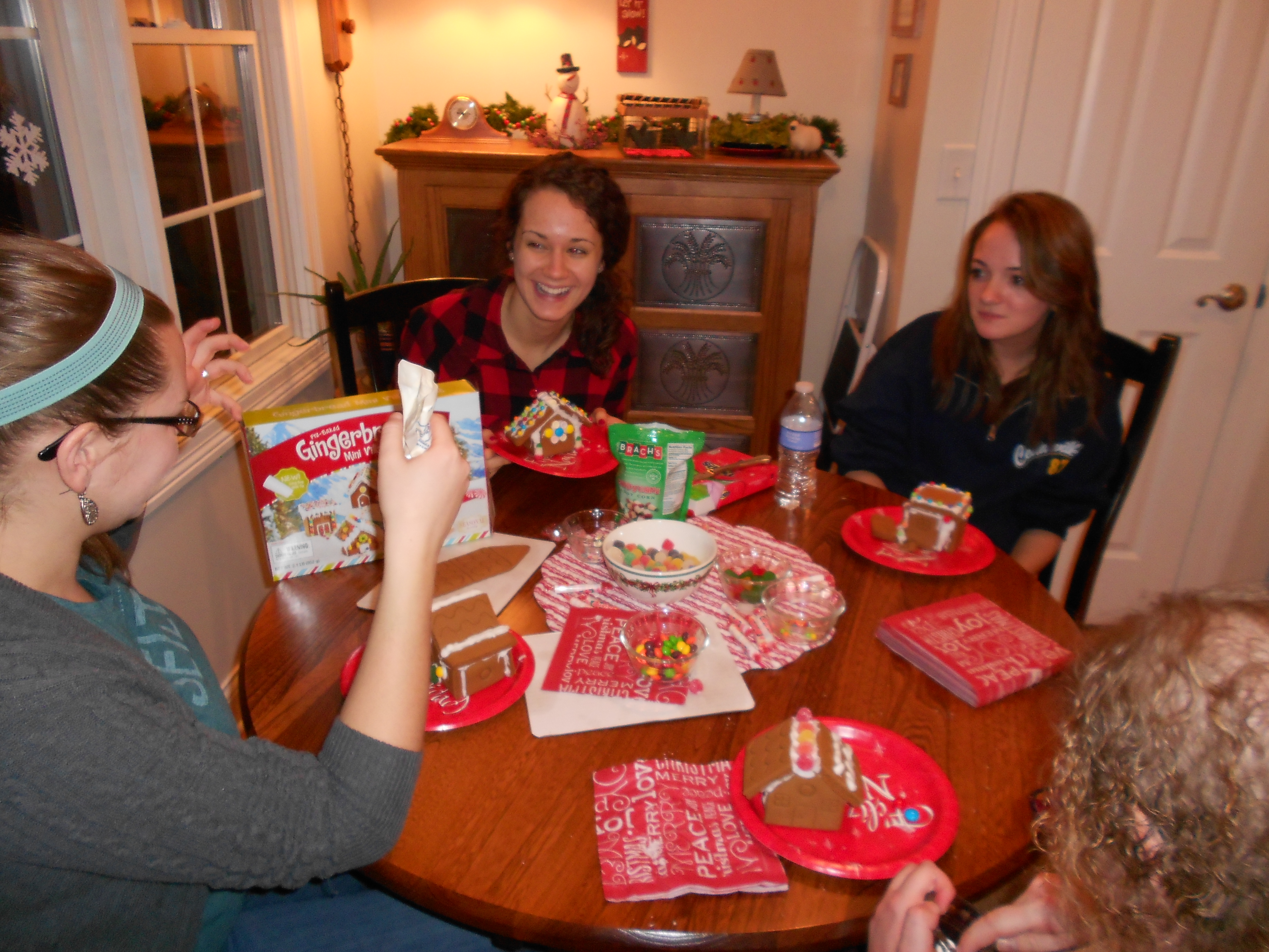 “Hey, Marcia,” I say with an excited expression on my face. Having her attention, I then blurt out my newest holiday cheer idea: “Want to build Gingerbread houses?”