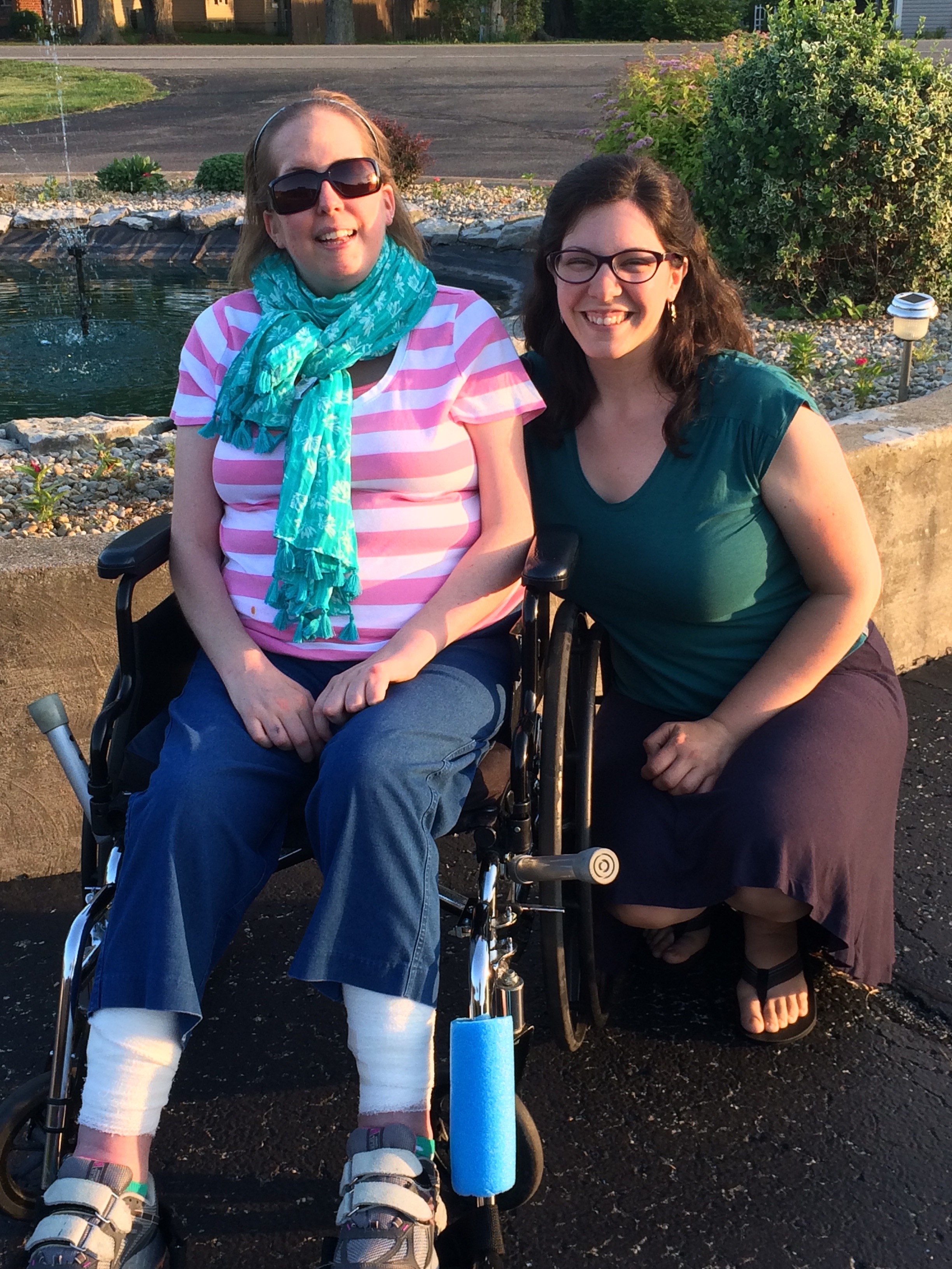 Melinda later on that same evening with her friend, Stephanie, who listened to her dictation and helped her type this post.