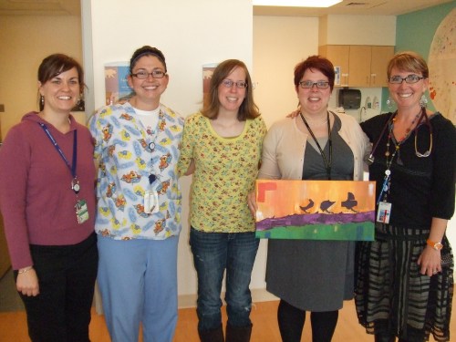 I had been with Children’s Hospital at Denver since I was 14. I grew close to my doctors and nurses especially during the year I started chemo July 2010-June 2011. I painted this for the Oncology Department not only as a thank you for everything they did for me, but also because during that time of chemo I noticed the children. I am old enough to understand why I am sick, why I was enduring chemo treatments and why my body changes and hurts sometimes. I looked around while I was having chemo and saw most of the patients were very little children. I wanted to paint ants, because most often we forget about ants. We step on them and they annoy us at picnics. But when you study them closely, you see their strength. The children I watched reminded me of those ants, because they are small yet their strength is strong!