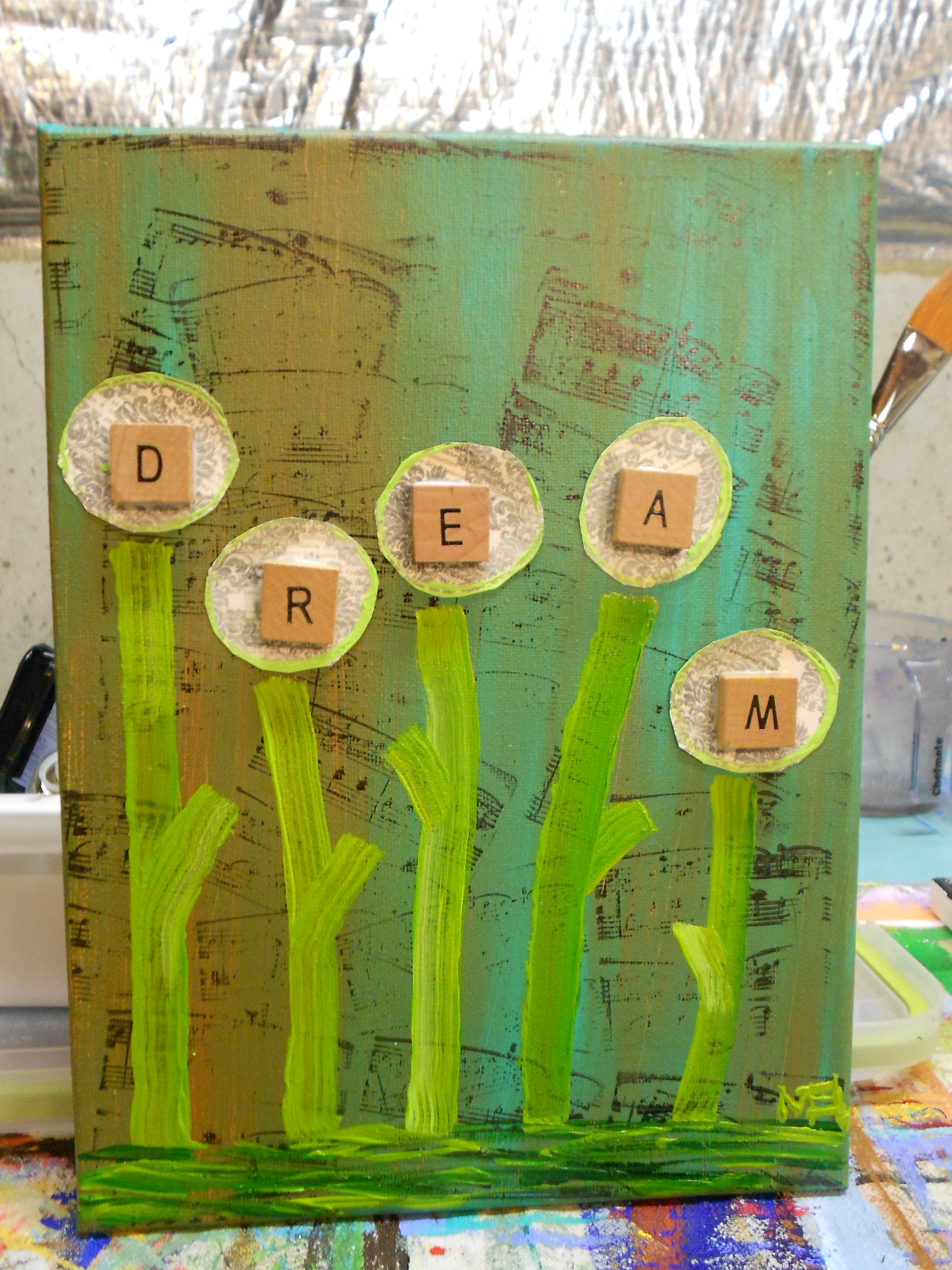 Working collaborating art reminded me of how we interact daily with each other. We have all been given gifts–mine are specific to me as the same for you. When we recognize our gifts and live them, it starts a beautiful, detailed picture.