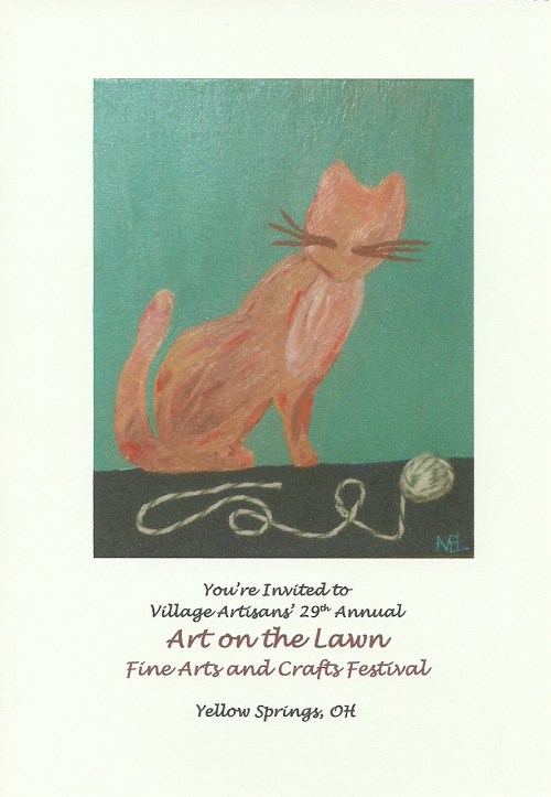 Yep, HaHa Pizza adds a few more reasons to my list of why small towns offer greatness: Friendly workers, local art, laid back atmosphere, mustard yellow walls (ok, that sounds weird but it adds character and it is one of my favorite colors). 🙂 At any rate, it has been my first time displaying my art in Yellow Springs, other than the art shows. I am thankful for the opportunity I have had this month at HaHa Pizza. I hope to get the chance to work with them again in the future.