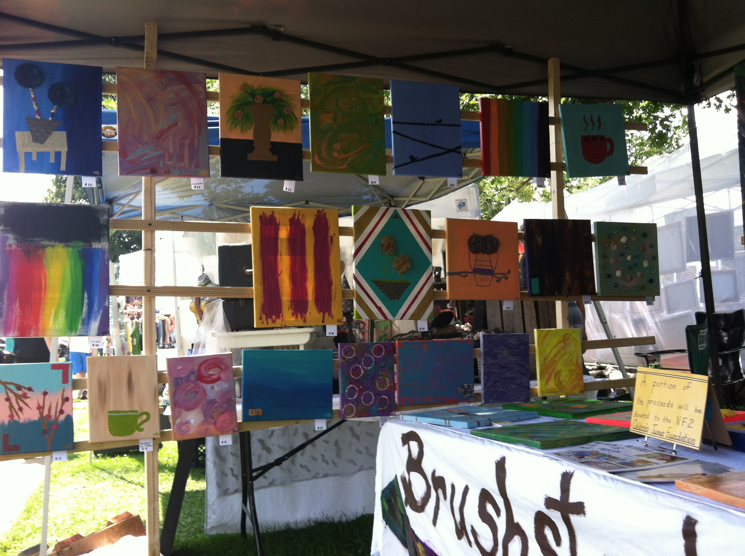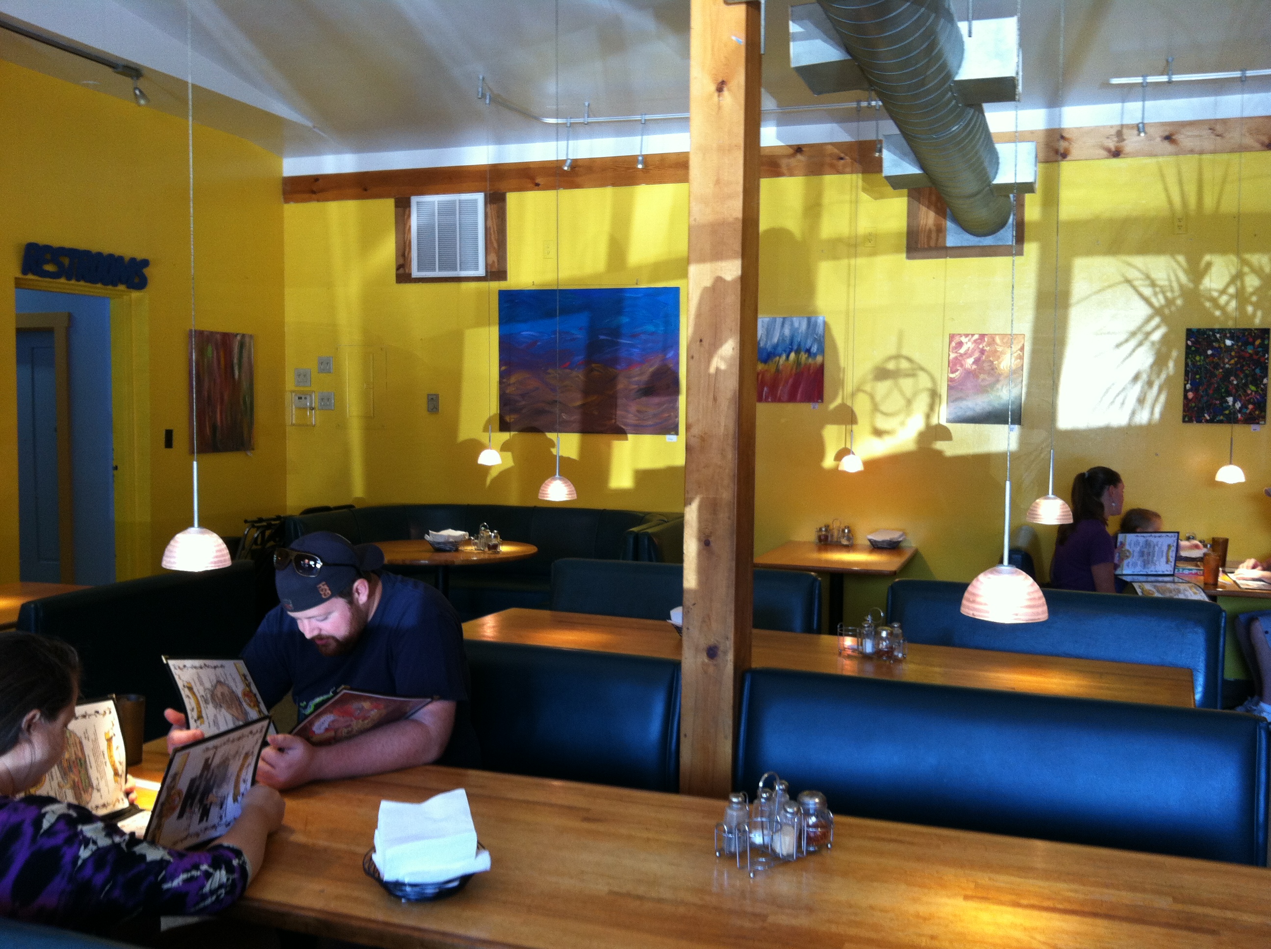 This month, my big canvas paintings have been hanging in a pizza place, called HaHa Pizza, in Yellow Springs. I have only eaten there a few times, but I have never been disappointed. They offer pizzas of all sorts; you can get your pizza on homemade wheat crust (my favorite) and load up just about any toppings for your slices (I haven’t tried eggplant on mine yet…maybe next time I will be brave.) If you feel like you forgot something, you can just head over to the salad bar and choose from all the fresh and local toppings offered there. I think most people around here agree–the salad bar gets five stars!